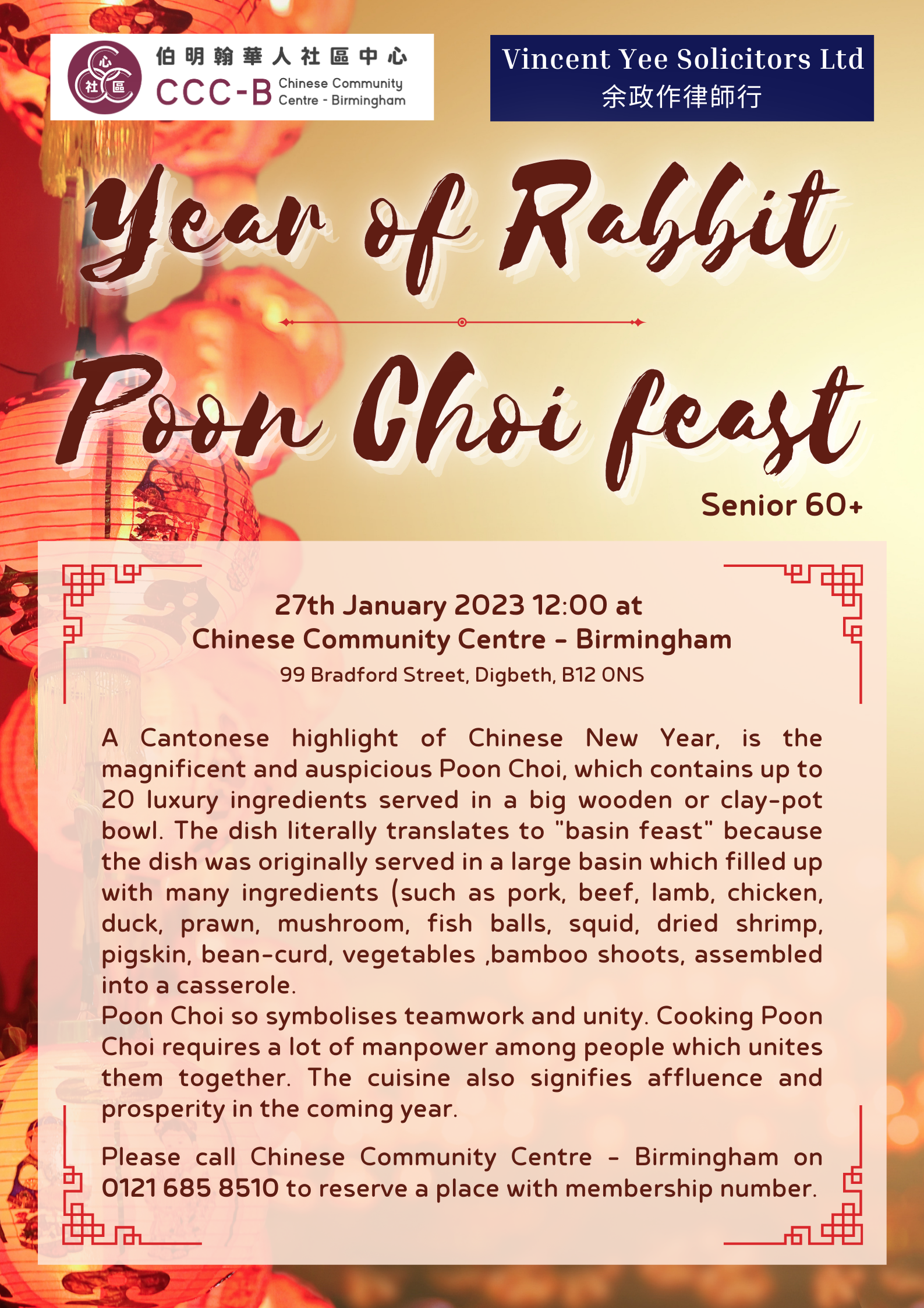 27th January 2023 12:00 at Chinese Community Centre – Birmingham